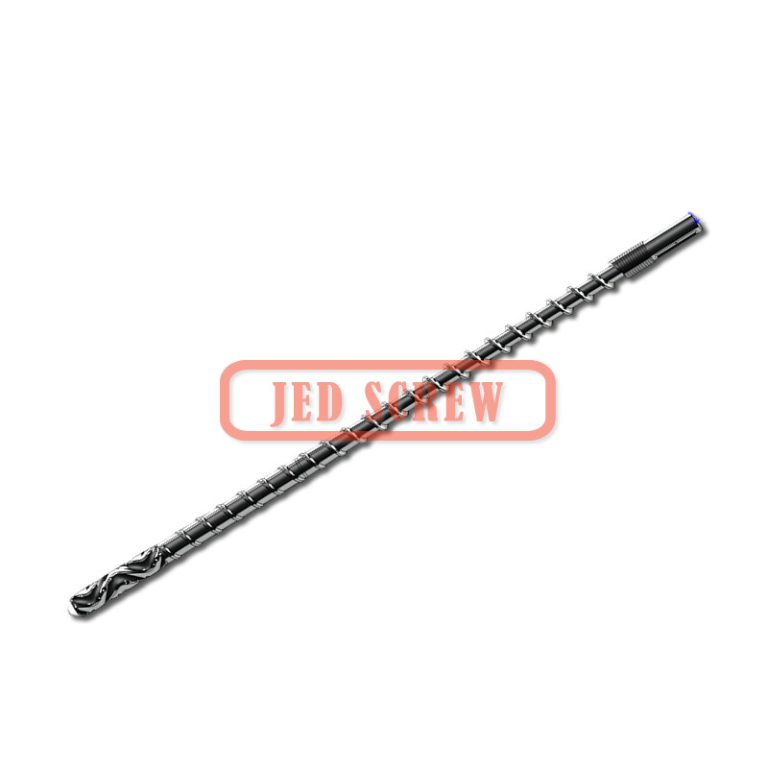 吹塑螺桿結(jié)構(gòu)有普通型和高屈率型,長(zhǎng)徑比為24:1、25:1、28:1、30:1、32:1。螺桿壓縮比與型坯頭壓縮比相結(jié)合,滿足擠出過程中物料溫度的可控性、物料塑化度的可控性、出料端物料流動(dòng)的穩(wěn)定性。合理的剪切和分散元素使助劑和材料揉捏更均勻,不同長(zhǎng)徑比的組織也不同。例如分離螺桿:經(jīng)過多次實(shí)驗(yàn),將二次邊緣拉到合理的位置,可以解決進(jìn)料、壓縮、螺桿干燥過程中產(chǎn)生的氣體雜質(zhì)。為適應(yīng)高產(chǎn)量螺桿和粉末進(jìn)料,機(jī)筒進(jìn)料段設(shè)有開槽襯套和強(qiáng)冷水循環(huán),增加摩擦力,提高螺桿的抽水能力。